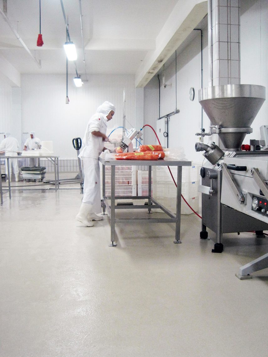 Quando se trata frigoríficos e pescados, limpeza e saneamento são prioritários. De carnes frescas a produtos pré-embalados, embalados a vácuo, o revestimento correto pode ajudar a garantir uma baixa exposição as bactérias e garantir a qualidade do produto e sua vida útil. Ao contrário do revestimento de borracha ou PVC, os revestimentos monolíticos resinados não requerem adesivos e podem suportar exposição constante a óleos de peixe, gorduras animais, sangue e miúdos.